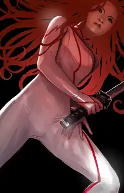 Colleen later met the actor Bob Diamond, one of the Sons of the Tiger.[13] She then battled Constrictor and Sabretooth.[14] Professor Wing then regained his memory, and Colleen's training in samurai skills by her grandfather was revealed.[15] Colleen then began a romance with Bob Diamond.[16] She was shot by Warhawk,[17] and later fought the Constrictor again.[18] She was briefly turned to glass by the second Chemistro,[19] and was soon returned to normal.[20] She then fought Fera (now Ferocia).[21] Colleen later temporarily ended her friendship with Misty due to the latter's romance with Tyrone King.[22] Colleen was next transported to K'un-L'un.[23] She killed Chiantang the mystic dragon.[24] She then attended the funeral of an impostor she believed to be Danny Rand.[25]