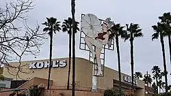 The Walker Scott building was demolished in 1987 to make way for a Mann 9-cinema multiplex. An iconic neon baton-majorette stood over the Mann 9 Theatres (now Sam's Club), from 1988 to 1999, before being moved to the front of the shopping center where artwork currently stands. Prior to display at the shopping center, the artwork was at the back of the College Drive-in's screen and shone onto El Cajon Boulevard for 36 years.[3][4][5]