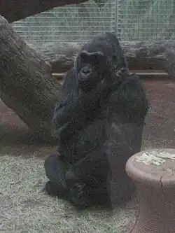 Colo (December 22, 1956 – January 17, 2017) was a western gorilla widely known as the first gorilla to be born in captivity anywhere in the world and the oldest known gorilla in the world in 2017.[1][2][3][4] Colo was born at the Columbus Zoo and Aquarium to Millie Christina (mother) and Baron Macombo (father), and lived there for her entire life. She was briefly called "Cuddles" before a contest was held to officially name her. (Mrs. Howard Brannon of Zanesville, Ohio, won the contest.)[5] Colo's name was derived from the place of her birth, Columbus, Ohio.[6]