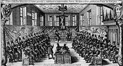The City Hall is located on the site of the former Ancient Roman Praetorium, which until the year 475 was seat of the Roman Governor of Germania Inferior. Merovingian kings are known to have used the praetorium as a regia until 754, however the building was ultimately destroyed by an earthquake in the late 8th century.[3] Under Hildebold of Cologne, the city was elevated from a bishop's to an archbishop's see in 795, and the area around the former praetorium has become home to both a group of wealthy Patrician merchants and Cologne's Jewish community, many of whom were under immunity granted by the king.