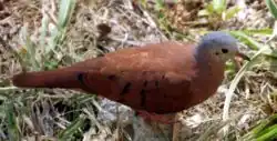 Columbina is a genus of small doves in the family Columbidae that live in the New World. They range from the southern United States through Central America and much of South America. Columbina doves are normally found in pairs or small flocks and generally occur in open country. They have maroon irides and pinkish legs. In flight, some species show a distinctive flash of rufous in the wings, while others show black-and-white wing-patterns.