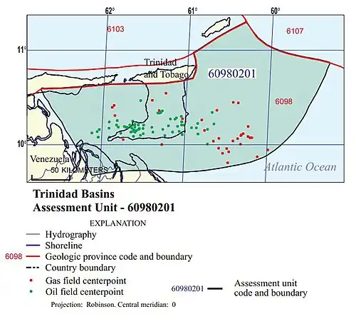 - ^ a b c d e Schenk, C.J. "Trinidad Basins Assessment Unit 60980201" (PDF). U.S. Geological Society. Retrieved 22 February 2015.