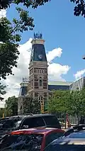 Columbus Historic District is a national historic district located at Columbus, Bartholomew County, Indiana, United States. It encompasses 574 contributing buildings and 1 contributing sites in the central business district and surrounding residential areas of Columbus. It was developed between about 1850 and 1930, and includes notable examples of Federal and Italianate style architecture. A number of commercial buildings feature locally manufactured cast iron and pressed metal components. Located in the district are the separately listed Bartholomew County Courthouse, Columbus City Hall, and First Christian Church. Other notable buildings include the First National Bank, The Crump Theatre (1889), Reo Theater, Ulrich Bakery (c. 1850), Samuel Harris House (1853), Keller House (1860), Old Post Office (1910), Franklin Building (c. 1870), Gent Mill (c. 1875), First United Presbyterian Church (1871–1885), Irwin Block (c. 1890), Irwin Home and Gardens (1864, 1910), and St. Batholomew's Roman Catholic Church (1891).[2]
