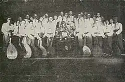 The ensemble was formed in February 1935 by combining the musicians of the former Kiev Bandurist Capella, the Poltava Bandurist Capella and the Bandurist Capella of the Kiev Philharmonia to perform at the Decade of Ukrainian Culture in Moscow.[1] This event was organized as a part of a change in policy that happened in 1934, a few months after the liquidation of all of the professional bandurist capellas.