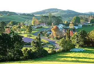 Comboyne (Birrpayi: Wambuyn or Wambutj, both lit. 'kangaroo')[2] is a village on the Mid North Coast region of New South Wales. It is situated on the Comboyne Plateau, some 60 km south-west of Port Macquarie, 35 km west of Kew and 54 km north-west of Taree. It is an attractive agricultural area with fertile soils and a high rainfall. The word "Comboyne" is a corruption of the local Biripi people's name for "a place of kangaroos" (Gambuyn).[3] At the 2021 census, Comboyne had a population of 416.[1]