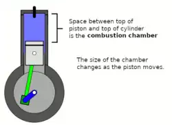 A combustion chamber is part of an internal combustion engine in which the fuel/air mix is burned. For steam engines, the term has also been used for an extension of the firebox which is used to allow a more complete combustion process.