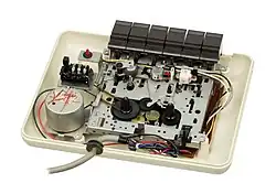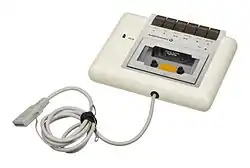 The Datasette is probably the most sophisticated tape-storage method of any microcomputer.[1] Typical compact cassette interfaces of the late 1970s use a small controller in the computer to convert digital data to and from analog audio tones. The interface connects to the cassette deck using normal audio cables like RCA jacks or 3.5mm phone jacks. Such a system is compatible with the Apple II[2]: 57-58 and TRS-80 Color Computer, as well as many S-100 bus systems, and allows them to be used with any cassette player with suitable connections,[3] but using analog tones—similar to how dial-up modems work—often results in read errors instead of successful loading of data.[1]