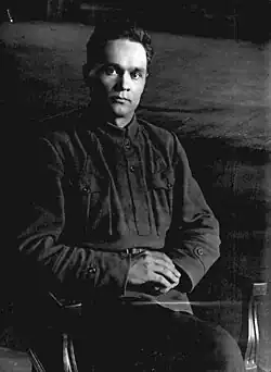 As of early December 1918 the Central Committee of the party issued German language leaflets distribute to German soldiers, calling on unity between soldiers and workers.[18] In the December 1918 elections to the Vilna Soviet of Workers Deputies the communists had won 97 seats, the General Jewish Labour Bund 60, Menshevik-Internationalists 22, Lithuanian Social Democratic Party 15.[19] On December 8, 1918 the Central Committee of the Communist Party of Lithuania and Byelorussia proclaimed the Provisional Revolutionary Workers and Peasants Government of Lithuania, which was formally installed in Vilna on December 16, 1918.[19][7][20] Mickevičius-Kapsukas and Angarietis arrived from Moscow, carrying instructions from the RCP(B) party centre (seeking to contain potential moves by Lithuanian communists to declare independence from Soviet Russia) and were hastily inducted into the Central Committee of the Communist Party of Lithuania and Byelorussia.[10][13] Other new members of the expanded Central Committee were Kazimierz Cichowski, Semyon Dimanstein and Yitzhak Vaynstayn.[13] The Provisional Revolutionary Workers' and Peasants' Government of Lithuania, headed by Mickevičius-Kapsukas and Angarietis, was placed under the leadership of the party Central Committee, rather than the Vilna soviet.[1]