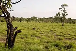 The Comoé National Park (French: Parc national de la Comoé) is a Biosphere Reserve and UNESCO World Heritage Site in the Zanzan and Savanes districts of north-eastern Ivory Coast. It is the largest protected area in West Africa, with an area of 11,500 square kilometers (4,400 sq mi), and ranges from the humid Guinea savanna to the dry Sudanian zone.[2] This steep climatic north–south gradient allows the park to harbor a multitude of habitats with a remarkable diversity of life. Some animal and plant species even find their last sanctuary in some of the different savanna types, gallery forests, riparian grasslands, rock outcrops, or forest islands.