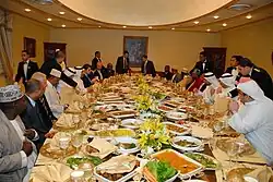 Comoro Gulf Holdings executives Bashar Kiwan, Majd Suleiman, Sheikh Sabah Jaber Mubarak Al-Sabah, and Mohammed Al-Otaibi, pictured during a dinner with members of the Comoran parliament at the Sheraton Hotel, Kuwait City, in October 2008.