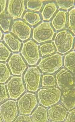 Complex oil bodies are often the most conspicuous features of liverwort cells in light microscopy, and as variable as they are in number, shape, colour, and homogeneity, they have long been recognized as taxonomically relevant.[4] Unfortunately, this is a character that requires observation in fresh material, as under unnaturally high rates of drying the complex oil bodies disintegrate.[4] Worth noting is that under natural rates of desiccation the oil bodies seem to retain their original structure.[32] Various classifications for oil body types have been proposed based upon their high variability, and they have been used extensively to distinguish between families, genera and species.[4] Chemotaxonomics based on the putative oil-body contents has also proved valuable.[15]