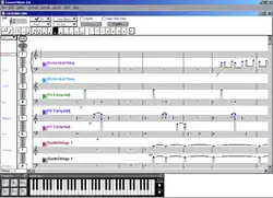 ConcertWare+ was available in both a MIDI version, which supported MIDI keyboards, and a non-MIDI version, and it included three tools: Music Player and Music Writer (named MIDI Player and MIDI Writer for the MIDI version), and InstrumentMaker, which allowed users to create software instruments with by editing their "waveform, envelope, and vibrato".[1] Later versions added an on-screen piano keyboard, harmonies generation, and support for 32 staves at a time.