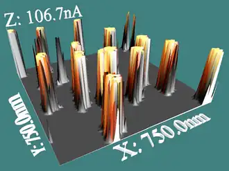 - ^ Cui, X. D.; Primak, A.; Zarate, X.; Tomfohr, J.; Sankey, O. F.; Moore, A. L.; Moore, T. A.; Gust, D.; Harris, G. (2001-10-19). "Reproducible Measurement of Single-Molecule Conductivity". Science. 294 (5542): 571–574. Bibcode:2001Sci...294..571C. doi:10.1126/science.1064354. ISSN 0036-8075. PMID 11641492. S2CID 26028013.