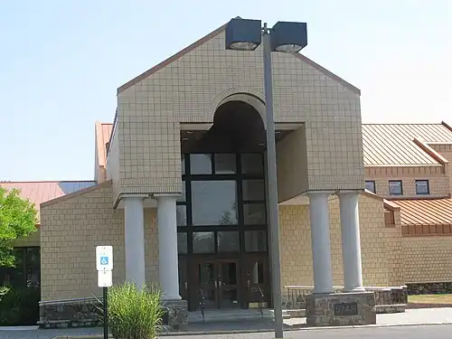 Originally established at former locations in neighboring Marlton and Mount Laurel, the building used for worship, prior to the 2022 merger, was described by The New York Times as "spectacular new gold brick and red-topped".[3] This building opened in 1990 and is located on Evesham Road in an affluent area in Cherry Hill.[4] Up to its closure, the main hall of the former synagogue had polished wood, and stained glass windows created by Paul Friend.[3][5] The former synagogue was built on the site of the Butts House, built in the 18th century near the boundary of the township with Evesham Township and believed to have been first owned by the Matlack family.[6]