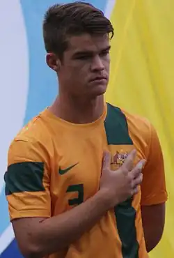 He captained the U17 team at the 2010 AFC U-16 Championship in Uzbekistan and in Australia's four matches at the 2011 FIFA U-17 World Cup in Mexico.[44][45][46][47][48] Australia were grouped with the Ivory Coast, Brazil and Denmark and made it out of their group to the knockout phase where they were eliminated by Uzbekistan. He was identified by the FIFA Technical Study Group as one of Australia's two outstanding players for the tournament.[49]