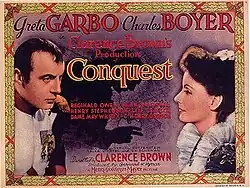 Conquest (also called Marie Walewska) is a 1937 American historical-drama film directed by Clarence Brown and starring Greta Garbo, Charles Boyer, Reginald Owen. It was produced and distributed by Metro-Goldwyn-Mayer. It tells the story of the Polish Countess Marie Walewska, who becomes the mistress of Napoleon in order to influence his actions towards her homeland.[3][4] The supporting cast includes Alan Marshal, Henry Stephenson, Leif Erickson, Dame May Whitty, George Zucco, and Maria Ouspenskaya.