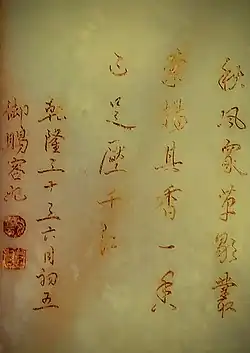 - ^ Zhang Hongxing; Hongxing Zhang (2002). The Qianlong Emperor: Treasures from the Forbidden City. NMS. p. 86. ISBN 978-1-901663-77-8.