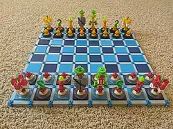 Construx is a brand of plastic building toys introduced by Fisher-Price in 1983. Unlike other building toys such as Lego, Construx feature beam-like pieces of varying lengths that snapped on to cubical connector knots in order to build large shapes. These are relatively secure even though no nuts or bolts were used. Panels allowed assembly of flat surfaces. Hinges, motors, wheels, and other movable parts expand the number of different shapes that can be built, and make moving creations possible. Construx was discontinued in 1988, briefly revived by Mattel in 1997, and then discontinued again. Mattel resurrected the Construx name as Mega Construx in 2017 (see Mega Bloks).