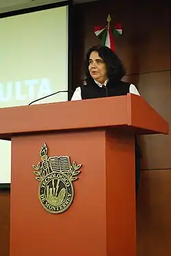 In 2010, she was named Chairperson of the Centro Regional para el Fomento del Libro para América Latina y el Caribe's Executive Committee (Regional Center for Book Promotion in Latin America and the Caribbean), in Bogotá Colombia.[2] She held this post from 2010 to 2012. Her recognitions include the Order of Civil Merit from the government of Spain in 2003, and the Emilia Ortiz Medal from the state of Nayarit in 2008.[5] In 2010, Colombia's Ministry of Culture awarded her the Medal of Cultural Merit.[10] In 2011 she received the Bernardo O'Higgins Order from the government of Chile,[4] and in 2017 she was awarded the Order of Victory of the Republic by Mexico's Defence Ministry, the Academia Nacional and the Academia Nacional de Historia y Geografía.