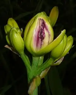 | Damage to the bud of a Hemerocallis flower from larvae of C. quinquenotata | |