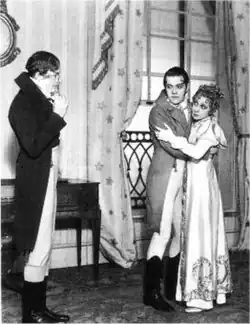 The show had a truncated run of 177 performances, by contrast with Coward's earlier romantic musical Bitter Sweet (697 performances),[7] because Printemps had to leave the cast to fulfil a film commitment in France, and no suitable replacement could be found.[8] Later that year, the Broadway run, despite starring Printemps, managed only 55 performances.[9] With the onset of the Depression, times had changed since the success of Bitter Sweet, and Conversation Piece was unable to find an audience.[10] In New York, Fresnay played Paul, Irene Browne was Lady Julia, and Carl Harbord was Lord Sheere.