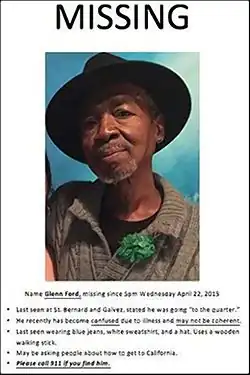 - ^ Goodman, Amy; Sumell, Jackie (17 April 2015). "Volunteers Gather to Care for Glenn Ford, Exonerated Louisiana Man Who Is Now Dying from Cancer". Democracy Now!. Archived from the original on 20 April 2015. Retrieved 21 April 2015.