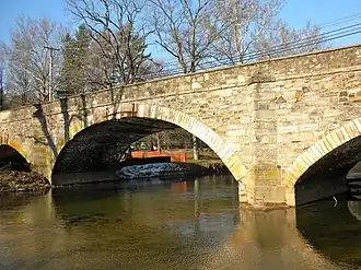 Before the construction of a bridge at this location, the site was known as Taylor's Ford. The original bridge at the site was probably timber, built about 1770, and funded by subscription. This was replaced by another wooden bridge in 1789. A petition to the Court of Chester County in 1804 complained of the decay of the bridge, and asked the county to erect a stone bridge instead. The bridge was built in 1807 and cost $26,911.03.[2][3] It continues to carry traffic today.[4]