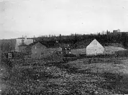In 1891, Gallagher relocated, this time to Edmonton, also located in the then-Northwest Territories. He had been intrigued with the fact that majority of the territory's wheat and vegetable crops came from the Edmonton area, and scenting a business opportunity, decided to settle there.[1] Purchasing a lot for his business less than 24 hours after arriving in Edmonton, Gallagher established with Calgary based businessman, William Roper Hull, the Gallagher-Hull Meat Company, a wholesale and retail butcher. Incorporated on January 6, 1900,[5] the establishment was a two-storey brick building located on the banks of the North Saskatchewan River, from which the establishment relied on for its freshwater supply. It contained rooms for slaughtering the animals, storage, butchering and preparation of the meat. Offering a variety of different proteins, such as veal, beef, lamb, turkey, chicken, goose, and pork, the business rose to become the largest of its kind in the developing city of Edmonton, producing over 200,000 pounds (91,000 kg) of meat per year by the turn of the century.[6] He would operate the establishment until his retirement in 1911. He also had interests in the brick industry, founding and serving as president of a local brick company.[7][8]