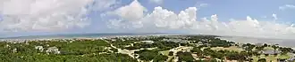 Previously a quiet and little-known location, a development boom in the 1980s sparked growth in the area, and since then, Corolla has become a popular vacation destination. Resting between the Currituck Sound and the Atlantic Ocean, Corolla attracts mainly beach-goers, especially in the summer months. Corolla is home to numerous attractions such as the historic Whalehead Club, Currituck Beach Light, Center for Wildlife Education, and is known for its numerous locations for shopping, dining, and participating in water sports.[3][4]
