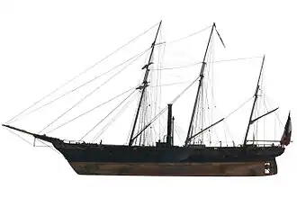 | Propulsion | Sail and 120 hp (89 kW) Barnes steam engine[2] |