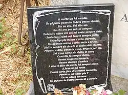 According to the anthropologist Dumenica Verdoni, writing new literature in modern Corsican, known as the Riacquistu, is an integral part of affirming Corsican identity.[44] Some individuals have returned from careers in continental France to write in Corsican, including Dumenicu Togniotti, director of the Teatru Paisanu, which produced polyphonic musicals, 1973–1982, followed in 1980 by Michel Raffaelli's Teatru di a Testa Mora, and Saveriu Valentini's Teatru Cupabbia in 1984.[45] Modern prose writers include Alanu di Meglio, Ghjacumu Fusina, Lucia Santucci, and Marcu Biancarelli.[46]