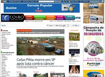 Cosmo On-Line is a generic and news Internet portal operated by media holding company Rede Anhanguera de Comunicação (RAC), located in Campinas, state of São Paulo, Brazil. It is the largest portal of the region and one of the first to be founded (1996) juat after commercial access to the Internet became available in the country. The portal hosts the websites for the flagship publications of RAC, such as newspapers Correio Popular, Diário do Povo, Notícia Já and Metrópole Magazine.