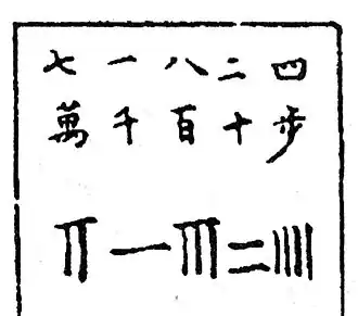 - ^ Chinese Wikisource 孫子算經: 先識其位,一從十橫,百立千僵,千十相望,萬百相當。