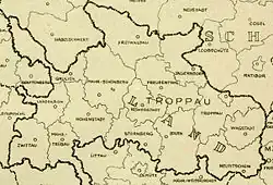 The Sudeten German county of Bärn during the period between 1938 and 1945. On 1 January 1945 the county included: