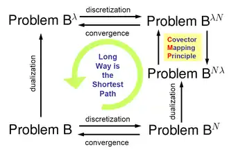 In a series of papers starting in the late 1990s, Ross and Fahroo showed that one could arrive at a solution to Problem (and hence Problem ) more easily by discretizing first (Problem ) and dualizing afterwards (Problem ). The sequence of operations must be done carefully to ensure consistency and convergence. The covector mapping principle asserts that a covector mapping theorem can be discovered to map the solutions of Problem to Problem thus completing the circuit.