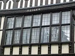 The house is constructed in sandstone, brick, and timber framing with plaster panels. The roof is of grey slate. It has four storeys and a gable overlooking the street. The street level consists of a modern shop front on the right of which is a flight of 11 stone steps leading to the Row level above. At the Row level is another modern shop front. Between this and the street is a walkway, a sloping stallboard and a rail with balusters overlooking the street. Above the Row opening is a carved fascia. In the storey above is a window running almost the whole width of the building. Its frame projects from the wall and is carried on eight corbels. The window has 14 lights, is mullioned and transomed, and contains leaded lights. Below and on each side of the window are timber-framed panels. The top storey is jettied. At its base is a bressummer carved centrally with "•T•C•1664" (the initials are those of Thomas Cowper), on each side of which are carved patterns. The top storey has a ten-light mullioned and transomed casement window containing leaded lights. Below the window are eight panels containing wooden carvings, and two similar panels are on each side of the window. Above the window are quadrant-braced panels. The bargeboard is decorated with carvings and at its peak is a finial.[1]