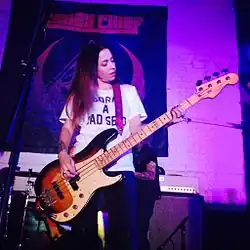 Along with the Amorosos, Crazy Chief, now defunct, included members of previous notable bands, prompting the press to refer to them as a local "super group".[35] Singer Drew Johnson also fronts Mojo Rising, a Doors cover band, while drummer Dan Conway performed on tour with Warrant and rhythm guitarist Nick Thompson performed in Dirty Somethings, which became known as Red Feather shortly before disbanding.[36][37]