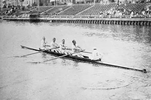 - ^ The German team changed the coxswain after the semi-final. Gustav Moths participated only in the semi-final and Max Ammermann participated in the final. However, the IOC medal database credits the gold medal only to Gustav Moths