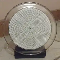 A crackle tube is a type of plasma lamp that is used most commonly in museums, night clubs, movie sets, and other applications where its appearance may be appealing for entertainment. Such a device consists of a double walled glass tube with a hollow center. The cavity between the inner and outer glass tubes is filled with thousands of small phosphor coated glass beads. A 5–14 kV transformer produces a low power gas discharge in the bead filled cavity, producing filaments of light that simulate lightning. Crackle tubes get their name not because of the sound they produce but rather because of the appearance of their internal behavior. The "lightning" (filaments or streamers) is forced around and in between the phosphor-coated glass beads, due to the beads' dielectric nature. In so doing, the phosphor is excited by the electrical energy and fluoresces producing visible light. Like plasma globes, crackle tubes respond to touch; the filaments appear to be "attracted" toward the point of contact and usually become more luminous (brighter) as the electricity is grounded. The tubes are also filled with a noble gas like neon, argon, or xenon which acts as the electron transfer medium of the cavity. The gas is typically below atmospheric pressure.