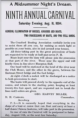 James E. Warner is a former sheriff of Union County who was the namesake of the James E. Warner Plaza at the Cranford Train Station.[30] Concerned by the then-growing pollution of the Rahway given the cleaner waters of his youth, Warner advocated for the preservation of the Rahway River and Rahway River Parkway parkland. One of Sheriff Warner's successful targets in fighting Rahway River pollution was his battle against the discharge of paper makers; one such site is now the regional theater known as the Paper Mill Playhouse in Millburn.[31] The Cranford Canoe Club, built in 1908, continues to offer canoes and kayaks for rent on the river in town.
