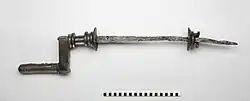 A Roman iron crank of yet unknown purpose dating to the 2nd century AD was excavated in Augusta Raurica, Switzerland. The 82.5 cm (32 inches) long piece has fitted to one end a 15 cm (6 inches) long bronze handle, the other handle being lost.[32][31]