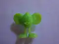 The most popular and collectable of any series was Crater Critters.[4] Kellogg's advertised Crater Critters as friendly bug-eyed creatures from the craters of outer space. Originally issued in 1968, the set was so popular R&L reissued them again in 1972. The set of eight Crater Critters (Kingly, Kindly, Kooky, Curly, Creepy, Clever, Cranky and Crawly) were produced in eight different colours. The four most common colours were orange, lilac, dark purple and lime green (all depicted below). Of the eight Critters, two had removable parts; Kingly Critter who had a removable four point black crown and Kooky Critter who had a removable black top hat. Kingly Critter with a four spikes on the crown intact is extremely rare and often fetches upwards of $200 on eBay.[4] In 2006, one sold on eBay for $450.[3]