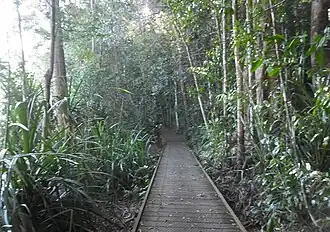 One of the recognizable features of the park are giant bull kauri pine trees (Agathis microstachya).[2]