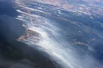 ![]() Fires clearing land along BR-163 to the east of the forest. Looking south towards deforested areas of Mato Grosso. Crepori National Forest is in the lower right of the image. | |
