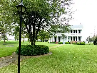 The name of the original builder in 1832 has been lost but from 1855 there is considerable information. The front of the two storied structure has eight doric columns with a wide balcony on each floor. Thomas F. Ward owned the plantation up to 1915, and after that as late as 1936, George W. Patterson.[6]