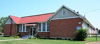 Crimora School, also known as Crimora Grammar School, is a historic public school building located at Crimora, Augusta County, Virginia. The original section was built in 1927, and is a brick building consisting of an auditorium/gymnasium as the core of the building with rectangular gabled blocks on either side containing two rooms with the projecting gable ends. It is in a Vernacular Bungalow style. The school was subsequently expanded in the 1930s and in 1942. In 1954–55, the school was again enlarged with a large brick veneer rear addition containing six classrooms, a cafeteria, teacher's lounge, library and office.[3]