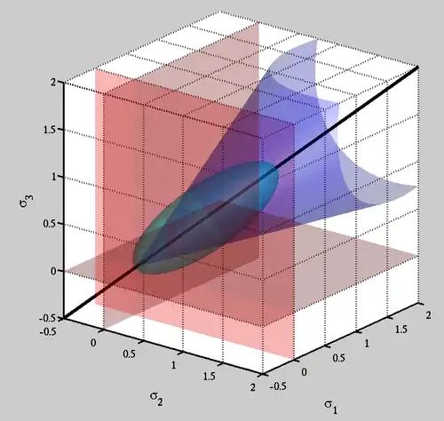 Cam-clay yield surface in principal stress space.