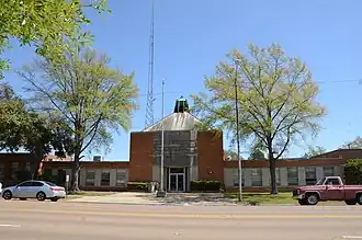 The Crossett Municipal Building is a historic multi-function municipal building at 307-309 Main Street in Crossett, Arkansas. The Art Deco building was designed by the firm of Trapp, Clippard & Phelps, and built in 1954 by C.W. Vollmer. Its exterior is primarily brick, with limestone trim. Prior to its construction, the municipal services of the city were scattered throughout town, and construction of this building was authorized in order to centralize them. The building was designed to house the public library in its north wing, the fire station in the south wing, and municipal offices, including the council chambers, mayor's office, and municipal court, in the center. The library moved out of its space in the 1960s, after which it was taken over by the police department.[2]