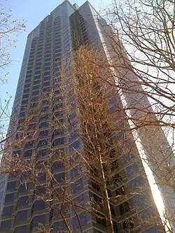 Located in the Dallas Central Business District, the Trammell Crow Center stands at a height of 686 feet (209 m) and is the sixth-tallest building in Dallas and the 18th-tallest in Texas. The building totals 1,200,000 square feet (110,000 m2) on 50 floors and has a polished and flamed granite exterior with a garden plaza and is bordered by the Crow Collection. There are many museums available in close proximity to the building: the Nasher Sculpture Center, the Winspear Opera House, and the Dallas Museum of Art.