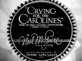 The song, Cryin' for the Carolines, was originally featured in the 1930 Warner Bros. film Spring is Here. The song was issued on the sound system Vitaphone,[1] accomplished with a record player which played a disk in time with the projector.[4] This would be higher quality than sound-on-film. In the film, the song was sung by The Brox Sisters.[5]
